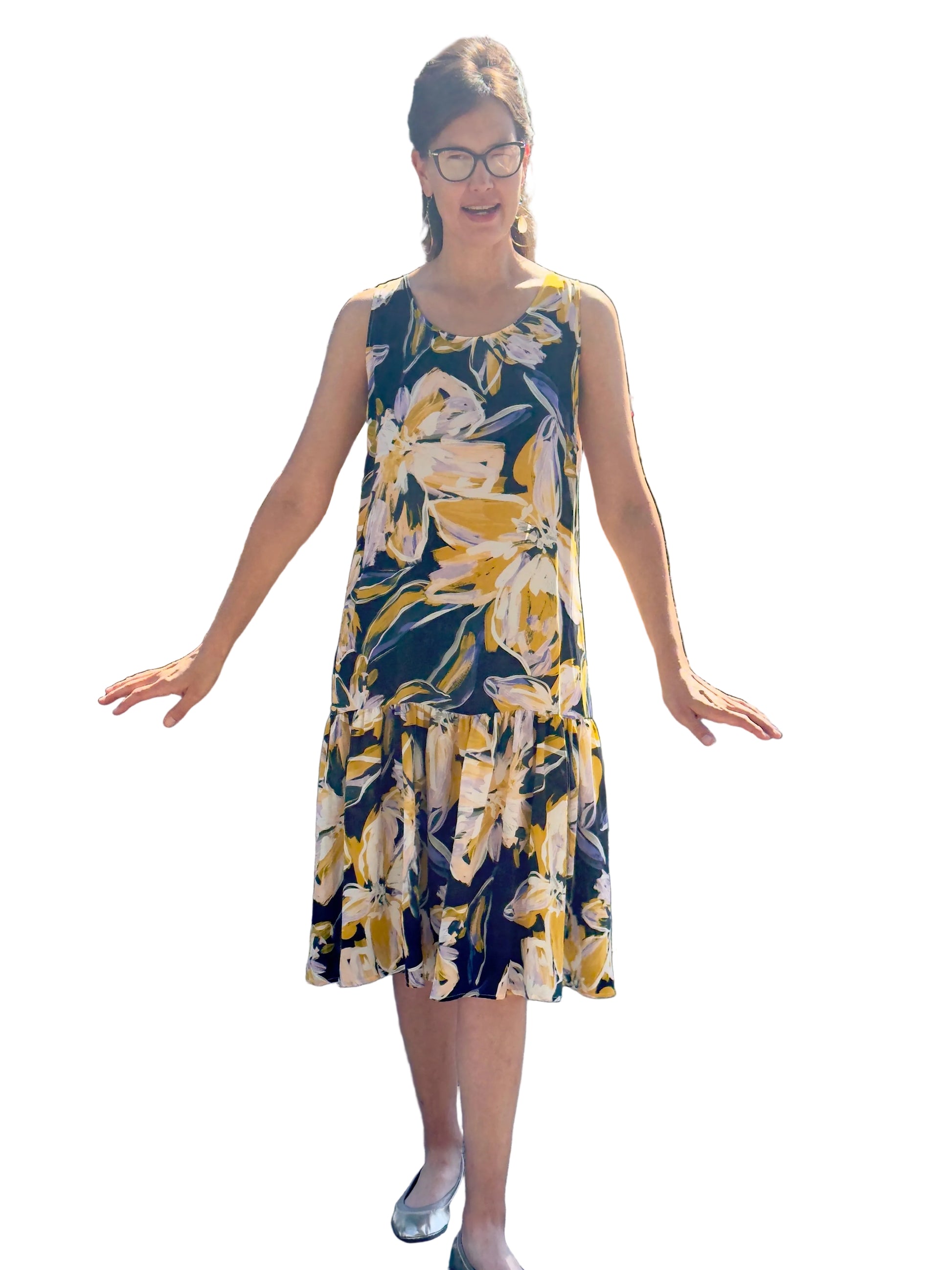 Elevate your everyday with this effortlessly elegant shift dress. Made from soft, breathable silk, this sleeveless design features a classic round neckline and a relaxed silhouette that falls just above the ankle. A playful ruffle hem adds movement and charm, making it perfect for both casual days and special moments.